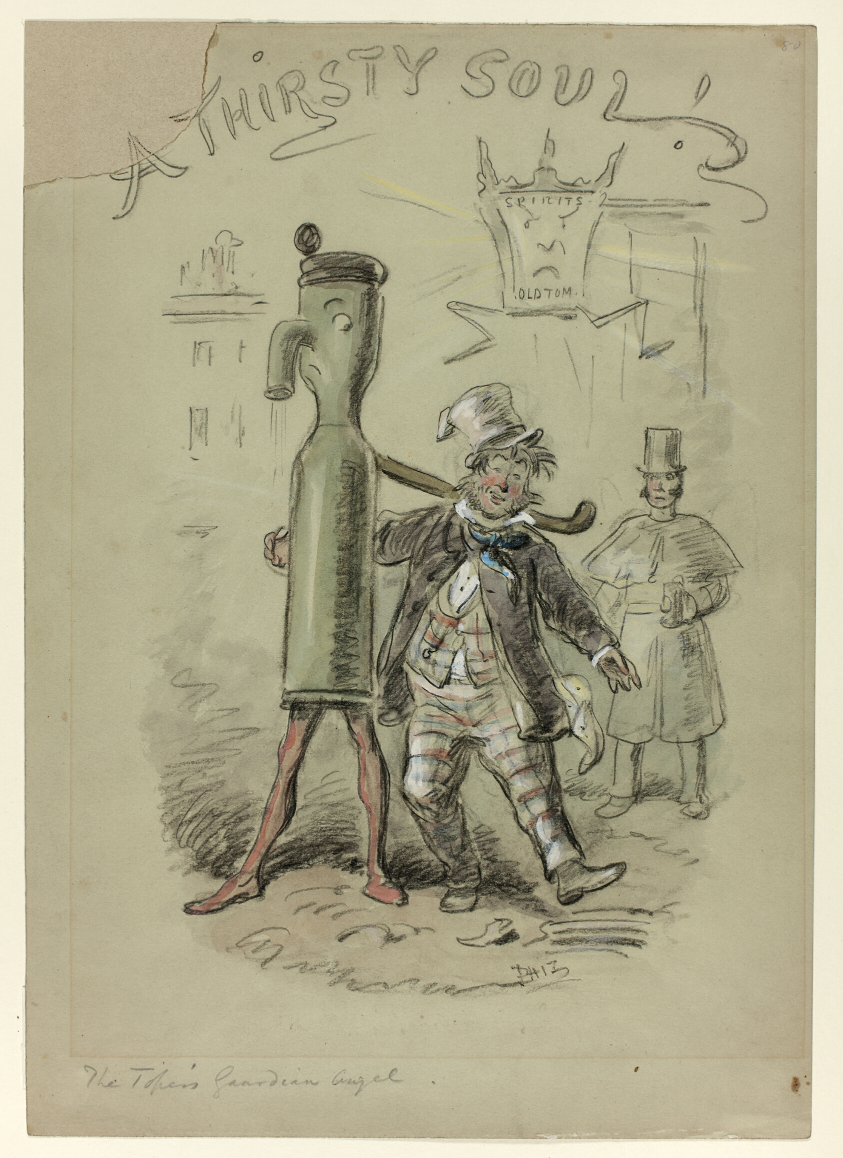 "A Thirsty Soul" carries the quiet emotional weight that defined Hablot Knight Browne's most intimate work — rendered in the subdued, layered tones of watercolor and charcoal on grayish-green paper, with delicate passages of gouache lifting the composition out of shadow. Browne, better known by his pen name "Phiz," built his reputation as the primary illustrator of Charles Dickens' novels, bringing expressive humanity to characters like Mr. Pickwick and Uriah Heep. That same gift for conveying inner life — a raised brow, a slumped shoulder, a figure caught mid-gesture — runs through his independent works, where the constraints of editorial illustration fell away. The mixed media he favored for pieces like this one allowed for unusual tonal range: charcoal providing structure and depth, watercolor washing in atmosphere, gouache adding flickers of highlight where the composition needed to breathe. Browne's close working relationship with Dickens spanned nearly two decades and produced some of the most recognizable images in Victorian literature, cementing his place as one of the defining illustrators of the era. The hand-painted oil reproduction translates the original's layered delicacy into the richer, more durable language of oil paint, preserving both the emotional stillness of the composition and the interplay of tone and light that makes this piece quietly compelling.