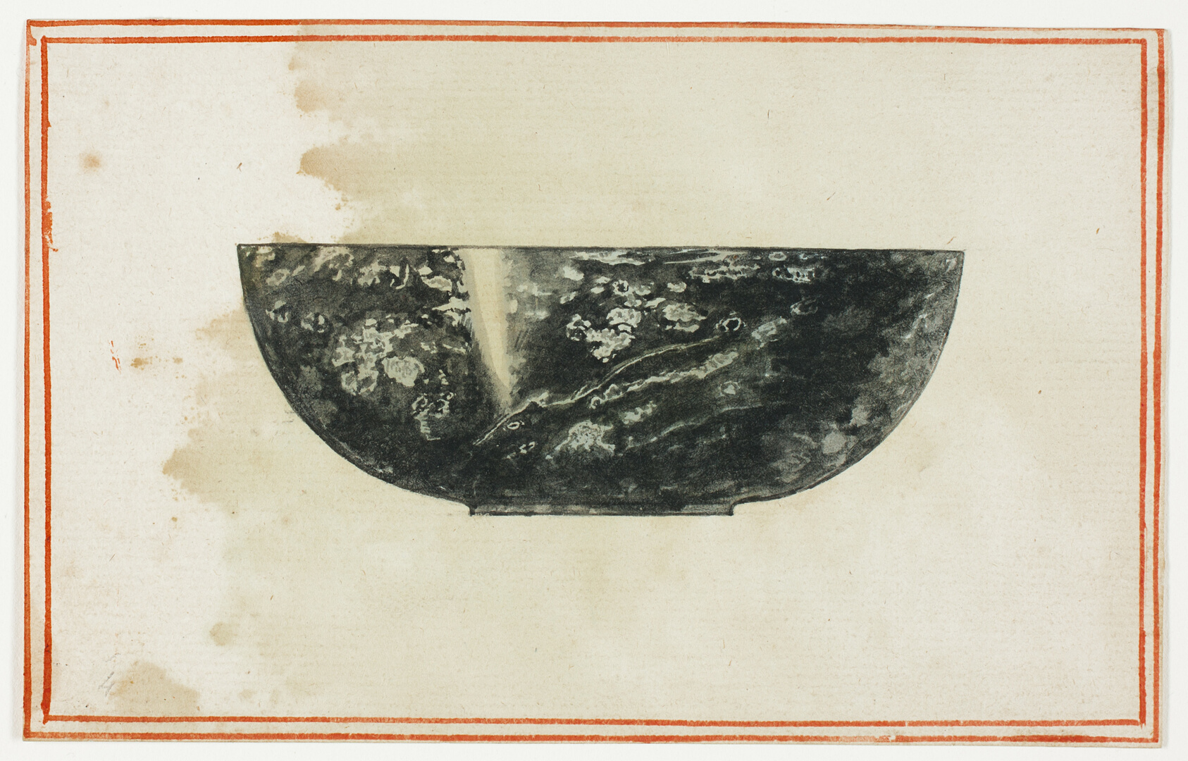 The stark elegance of a black marble bowl rendered entirely in monochrome — every curve catching light, every shadow pooling deep — makes this small work by Giuseppe Grisoni quietly arresting. Grisoni, born in Brussels in 1699 and trained in the European tradition, moved fluidly between England and Italy during an era when aristocratic collectors prized refined object studies as much as grand portraits. Working in black gouache on ivory laid paper, he exploited the warm, pale ground to suggest depth and reflected light with extraordinary economy — the bowl reads as simultaneously solid and luminous. This approach, favoured by draughtsmen making careful records of classical or decorative objects, demanded precise tonal control and a confident hand, leaving little room for correction on the unforgiving surface. The Art Institute of Chicago holds the original among its European drawings, where it sits as an understated example of the meticulous still-life studies that circulated among eighteenth-century collectors and workshop practitioners alike. Our hand-painted oil reproduction translates Grisoni's restrained tonal language into the richer medium of oil on canvas, preserving the sculptural weight, the subtle play of reflected light, and the quiet authority that make the original worth seeking out in the first place.