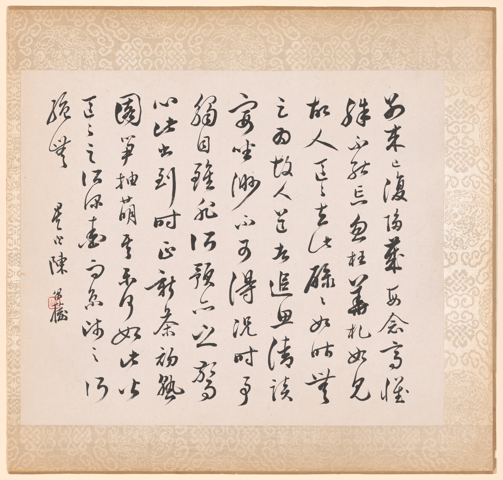 This intimate album of twenty-five leaves sits at the intersection of two great Chinese art forms, where Xugu's brushwork and the flowing lines of classical calligraphy speak to one another across the page. Xugu — born Zhu Huairen and later ordained as a Buddhist monk — was one of the most distinctive voices in the nineteenth-century Shanghai school. Where his contemporaries favoured lush, decorative surfaces, Xugu cultivated a spare, almost eccentric restraint: angular strokes, cool ink tones, and a quiet detachment that gave even mundane subjects an air of contemplation. His album leaves were especially prized, offering an intimate scale suited to his understated vision. Working in ink with light colour washes on paper, this 1897 album reflects the literati tradition of pairing image and text as complementary expressions rather than illustration and caption — each leaf a small meditation in itself. Xugu spent much of his later career in Shanghai, where collectors and fellow artists sought him out, yet he maintained the monk's habit of keeping his own counsel, rarely signing works or seeking patronage in conventional ways. The hand-painted oil reproduction translates the quiet authority of the original into a lasting object — preserving the rhythm of the brushwork and the cool, considered palette that made Xugu's vision unmistakable.