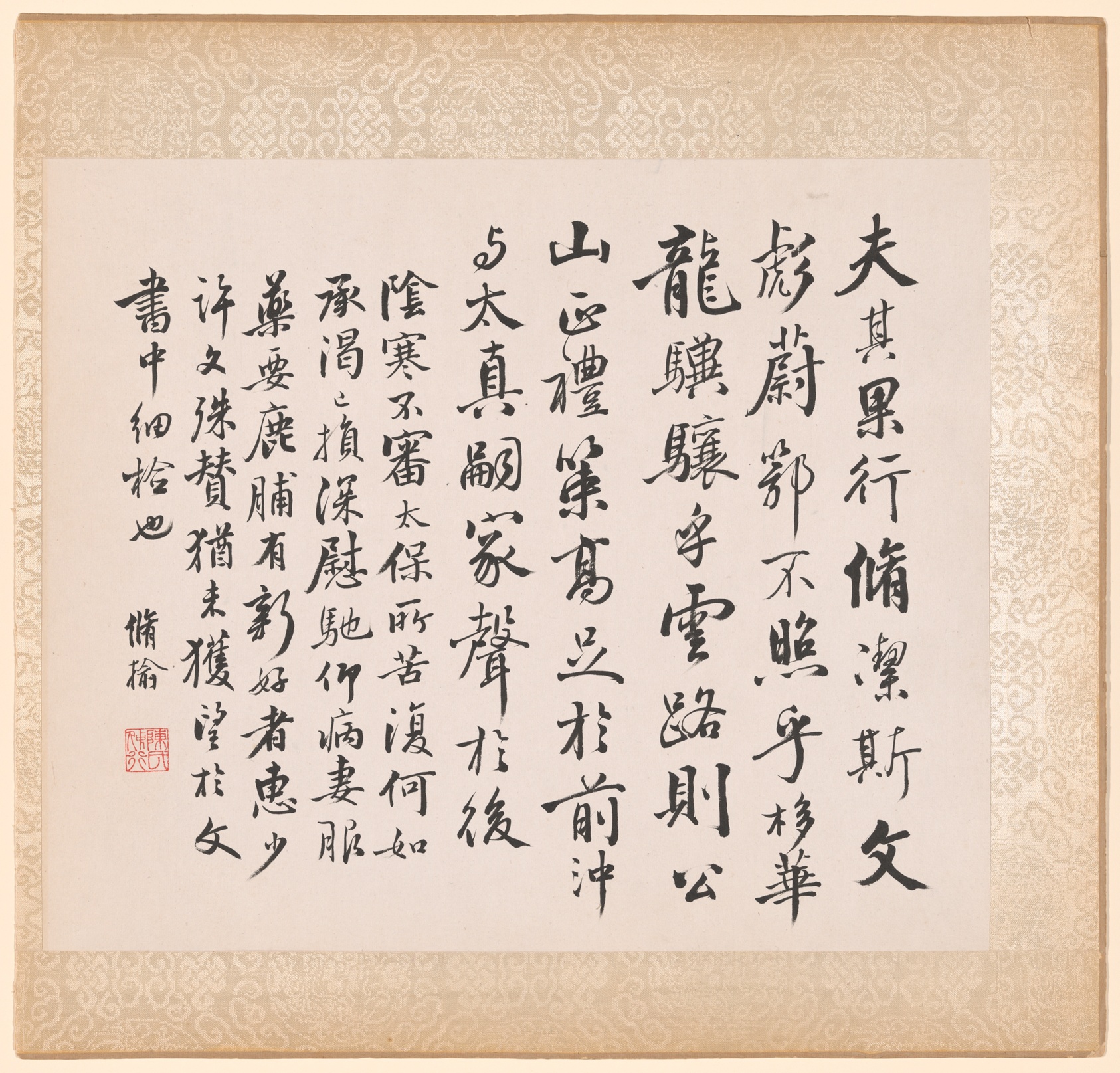 Xugu's 1897 album captures the quiet authority of a painter who had spent decades refining a style that felt entirely his own — angular, spare, and alive with restrained energy. A former Qing military officer turned Buddhist monk, Xugu spent much of his later life in Shanghai, where he became a central figure in the city's vibrant artistic scene. His brushwork broke from orthodox literati conventions: forms are often fragmented, lines slightly trembling, compositions stripped to their essential gesture. In this album of 25 leaves, ink and light washes of color work together with the calligraphy to create a unified meditation — image and text not illustrating each other, but breathing in the same rhythm. Xugu was notably reluctant to sell his work, giving paintings away to friends while remaining famously independent of wealthy patrons — a stubbornness that only deepened his reputation among collectors after his death. This hand-painted oil reproduction translates the album's intimacy onto canvas, preserving the delicacy of Xugu's ink lines and the subtle warmth of his colour while giving the work the physical presence it deserves on a wall — a fitting tribute to one of the Qing dynasty's most distinctive and quietly radical voices.