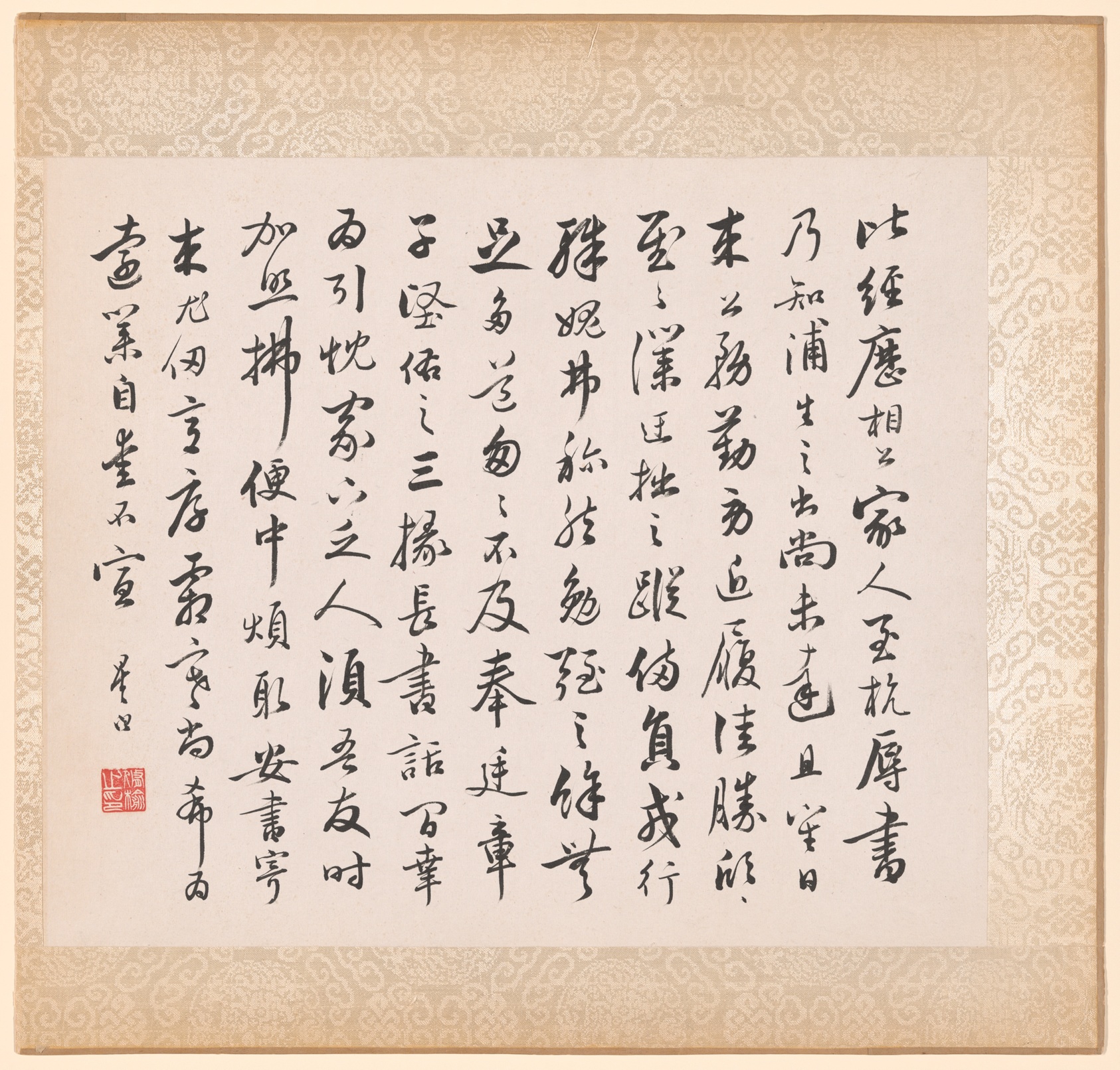Xugu's calligraphy carries the same restrained energy as his paintings — spare, deliberate, and quietly alive on the page. Born around 1823, Xugu became a Buddhist monk and one of the most distinctive painters of the late Qing period, associated with the vibrant artistic circles of Shanghai. Where his contemporaries favoured lush, decorative brushwork, Xugu developed a cooler, more eccentric style — angular forms, abbreviated strokes, and a palette that feels almost withdrawn. His calligraphy reflects the same sensibility: unhurried, structured, with a faint tremor in the line that is entirely his own. In album format, where painting and inscription exist side by side, text and image become a single statement rather than two separate things. Xugu was famously private and rarely accepted commissions, preferring to paint and write on his own terms — a quality that gives even his most modest works a sense of genuine intent. This hand-painted oil reproduction translates the ink-and-paper intimacy of the original into a medium with greater physical presence, preserving the tonal delicacy and the quiet precision of Xugu's hand while allowing the work to live on a wall rather than in an archival sleeve.