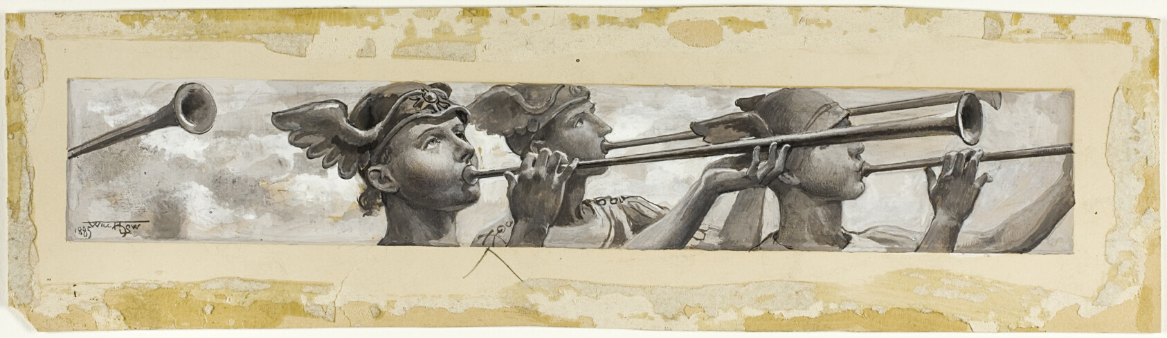 - Black, gray and white gouache, over traces of graphite, on cream wove card