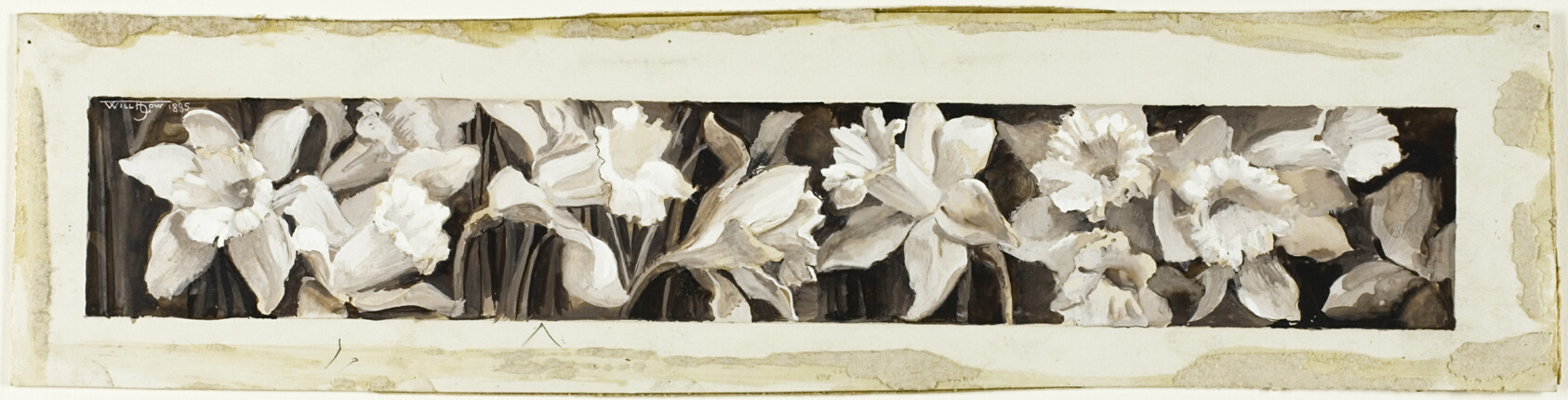 - Brown, gray and white gouache, over traces of graphite, on cream wove card