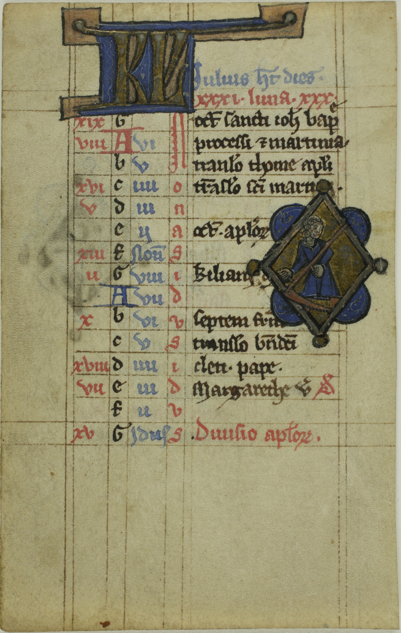Figure with Scythe, Illuminated Initials "KL" or "BV" recto, and Fish with Lobster Claws, verso, from a Psalter or Book of Hours