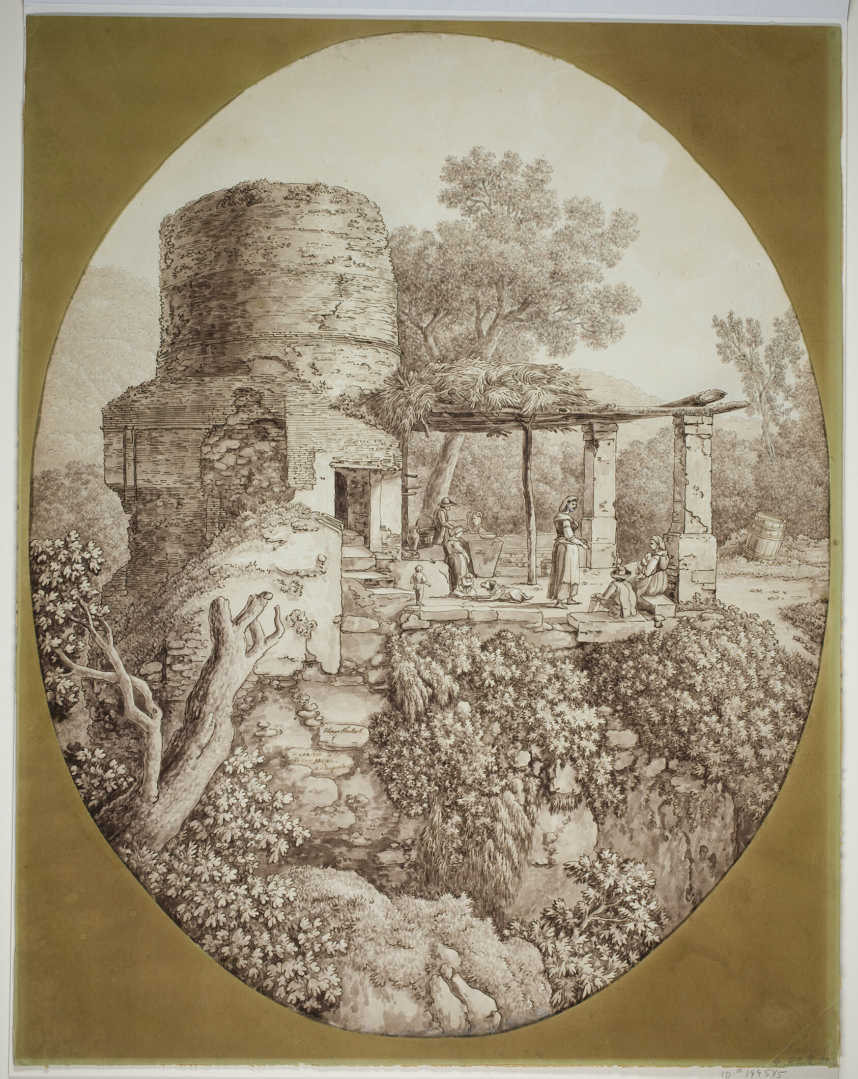 - Pen and brown ink and brush and brown wash, with graphite and traces of white gouache, on cream laid paper, laid down on cream laid paper