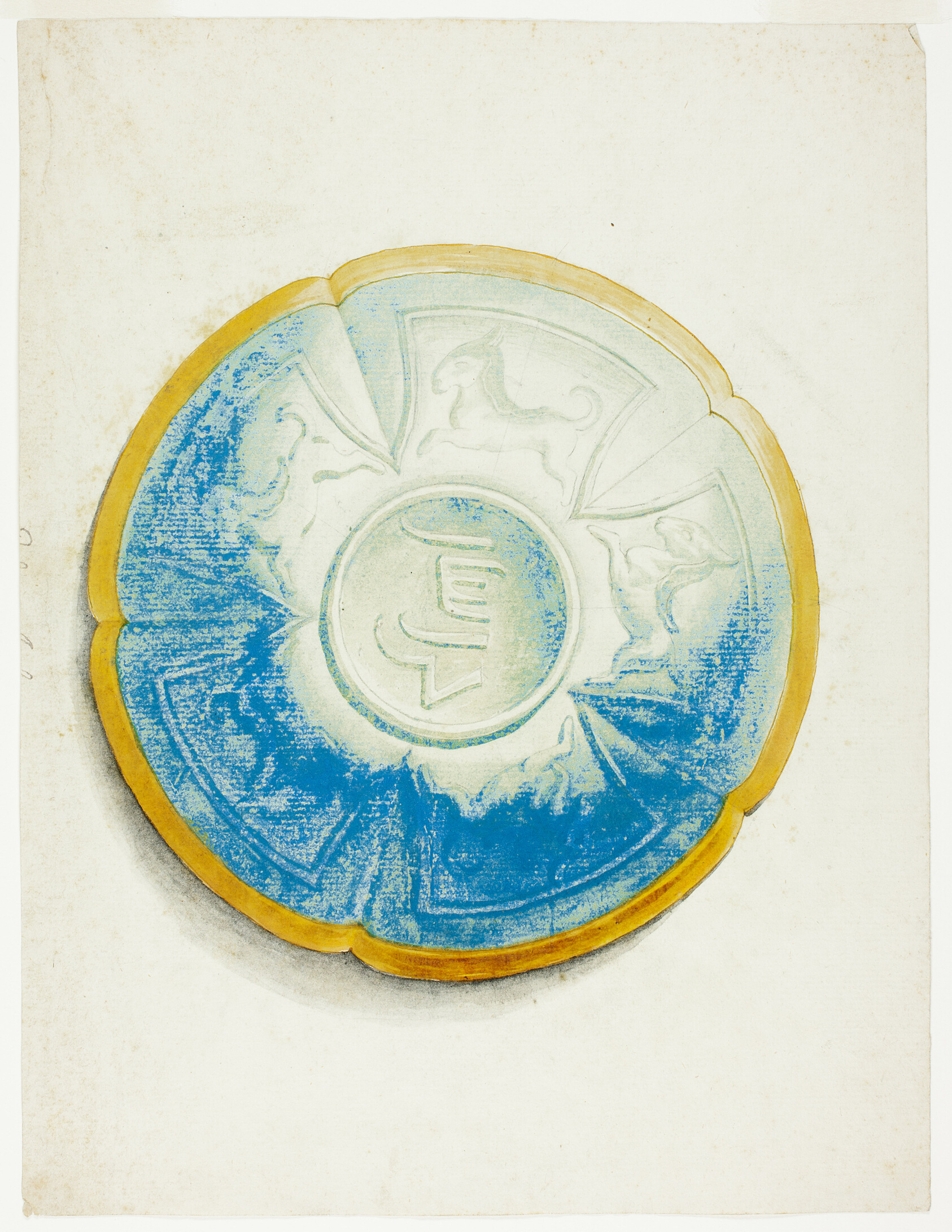 - Gouache over black chalk, on ivory laid paper