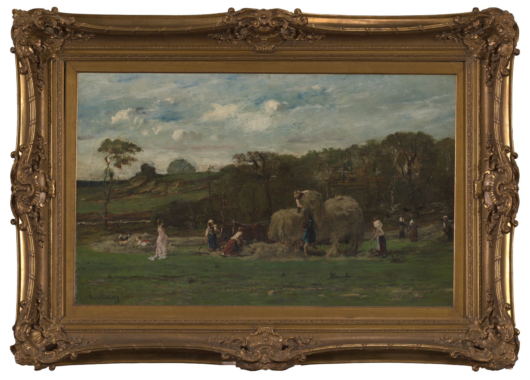 Loading Hay captures the rhythm and weight of rural labour with the kind of unhurried honesty that only a painter who lived it could achieve. Mihály Munkácsy rose from a childhood of poverty in rural Hungary to become one of the most celebrated realist painters of nineteenth-century Europe. By the time he painted this work in the mid-1880s, he had mastered a technique of building rich, dark grounds and layering warm light over them — giving his canvases an almost interior glow even when set entirely outdoors. The figures in Loading Hay carry that same quality: solid, dignified, lit as though the sky itself is paying attention. Munkácsy won the gold medal at the 1870 Paris Salon with a peasant scene, and it was that reputation — for finding grandeur in ordinary working life — that made him a household name across Europe and America during his lifetime. The hand-painted oil reproduction renders Munkácsy's tonal depth and brushwork by hand on canvas, preserving the textural richness that print reproduction flattens. What you receive is not a copy but a painting made in the tradition the original belongs to.