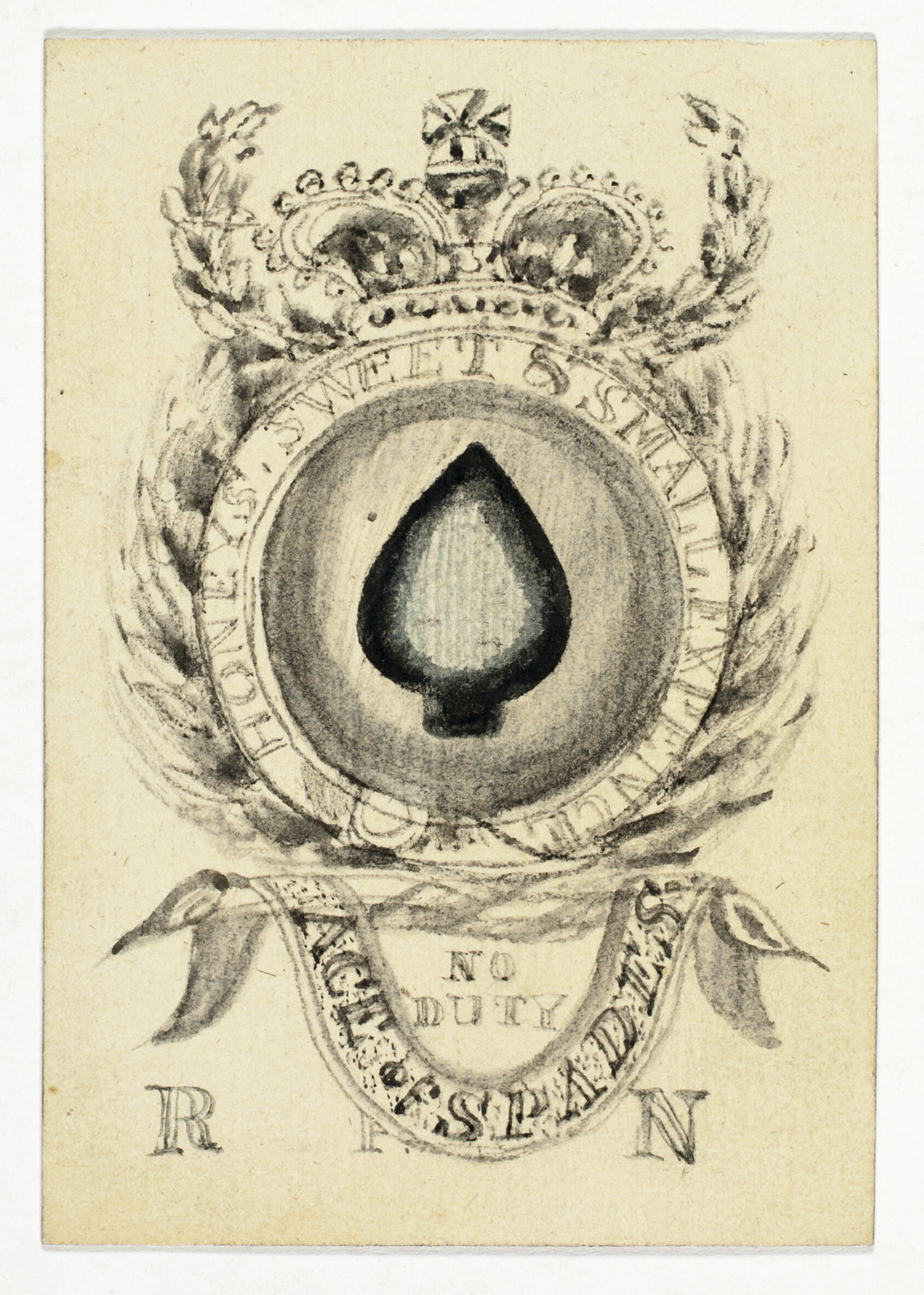 The Ace of Spades carries more symbolic weight than any other card in the Western deck, and this precise, quietly commanding study captures exactly why. Created by an unknown hand using pen and black ink, brush and black wash, and traces of gray gouache on cream wove card, the work belongs to a tradition of detailed draughtsmanship that treated everyday objects as worthy of the same careful attention as grand subjects. The restrained palette — blacks, grays, and the warm ground of the card itself — gives the composition an almost meditative gravity. The technique is controlled and deliberate, each mark serving the image rather than announcing itself. The Ace of Spades has long occupied a singular place in cultural history: in many European card games it became the highest-value card in the deck, and tax authorities in England once required a special stamp on this card specifically to certify that duty had been paid — making the ace a marker of both prestige and official scrutiny. This hand-painted oil reproduction translates the original's tonal precision and disciplined linework into a medium that rewards close looking. Painted on canvas by a skilled artist working from the Art Institute of Chicago's source, it brings the quiet authority of this small masterwork into your home at a scale you can truly live with.