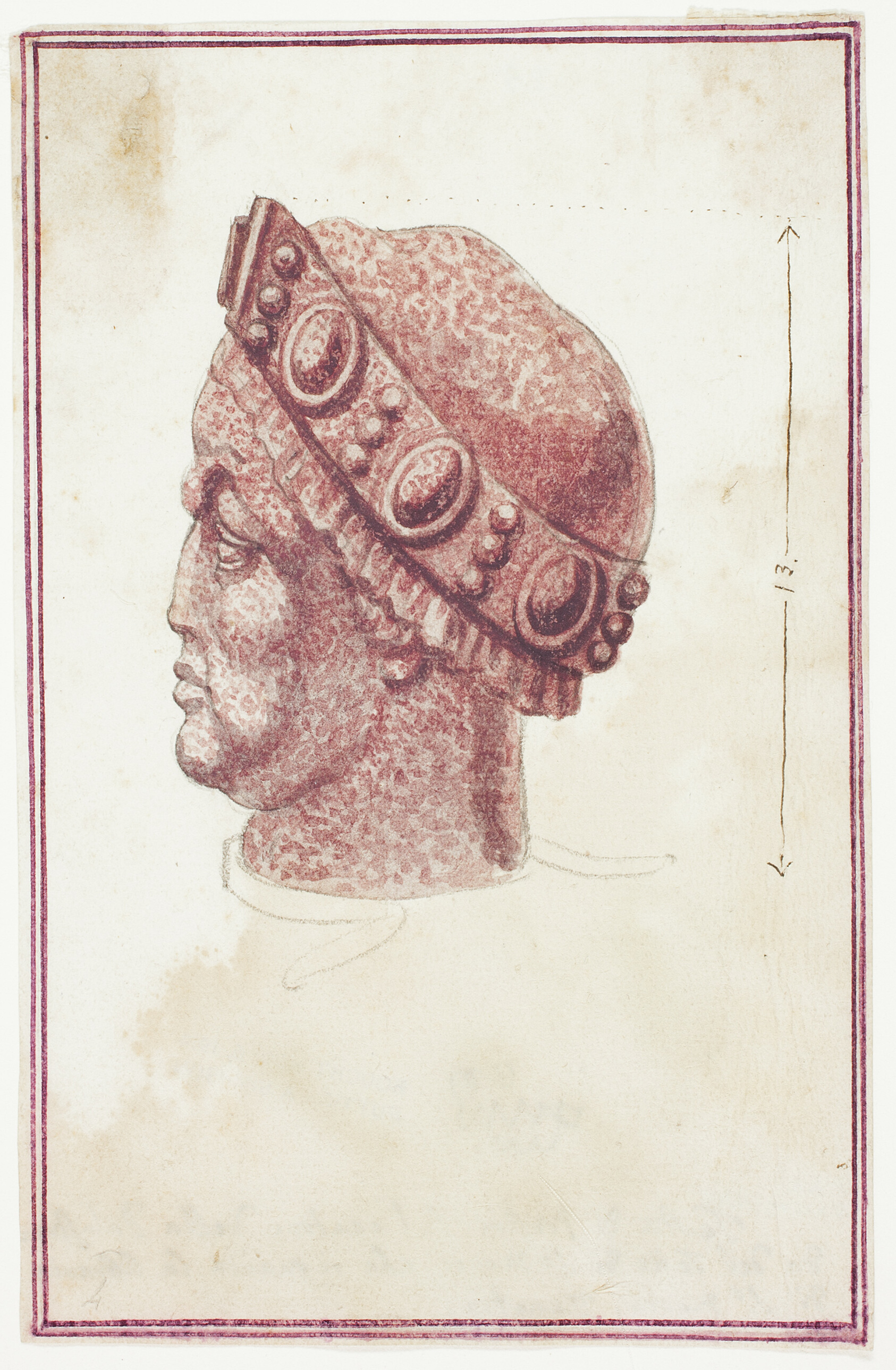 Rendered with quiet precision, this study captures one of the mysterious porphyry heads embedded in the exterior of Venice's Basilica di San Marco — ancient carved fragments that have puzzled scholars and captivated artists for centuries. Giuseppe Grisoni was a Flemish-born painter who spent much of his career in Italy, moving between Florence and Rome and building a reputation for sensitive portraiture and careful observation of antiquities. Working in gouache over black chalk with pen and brown ink, he brought a draughtsman's discipline to this sheet — the layered media allowing him to describe both the cool hardness of the carved stone and the quality of light falling across it. The choice of ivory laid paper adds a warmth that offsets the severity of the subject. The porphyry heads at San Marco are thought to date from late antiquity, likely Egyptian or Roman in origin, and were among the spoils brought to Venice during the Fourth Crusade of 1204 — making them as much a symbol of Venetian ambition as of ancient craftsmanship. Our hand-painted oil reproduction translates Grisoni's restrained, scholarly intimacy into a medium with greater physical presence, honouring both the archaeological gravity of the original subject and the careful eye he brought to recording it.