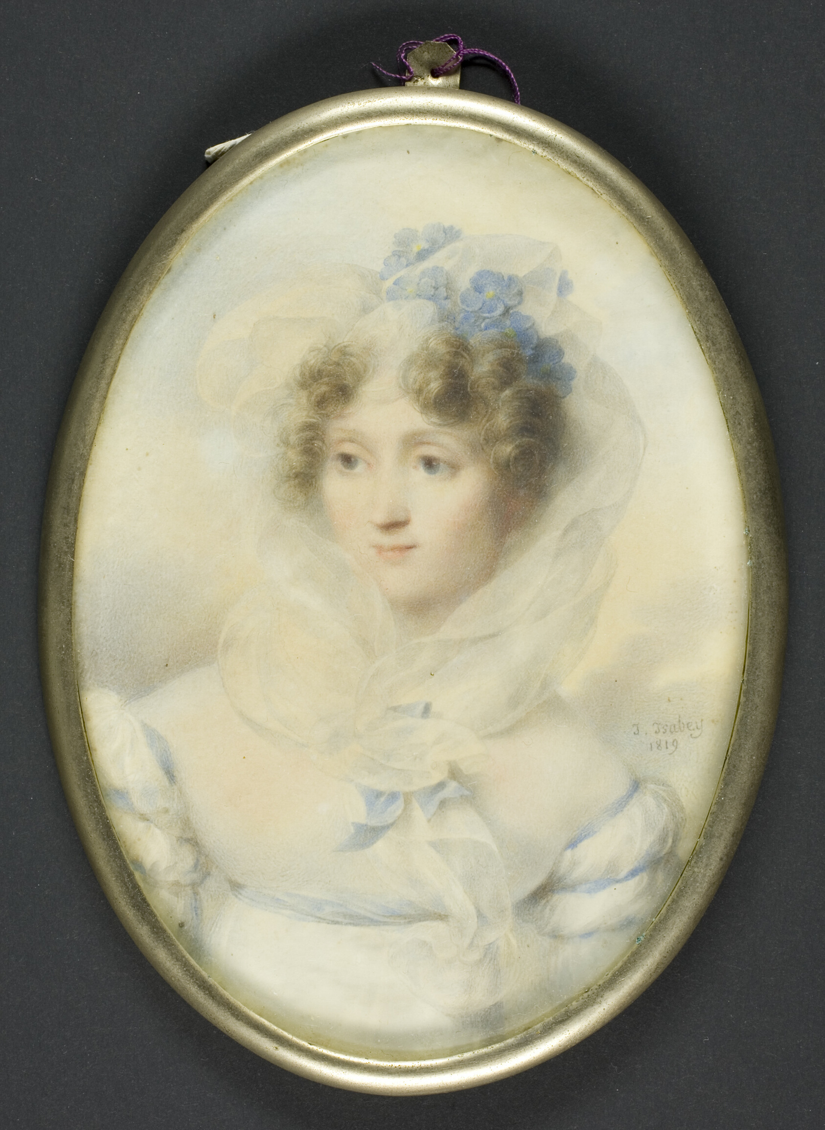 Portrait of a Lady radiates the quiet refinement that defined French Restoration-era portraiture — soft, luminous skin tones set against rich fabrics rendered with an almost tactile delicacy. Jean-Baptiste Isabey was the foremost portrait miniaturist of his generation, trained under Jacques-Louis David and appointed court painter to Napoleon Bonaparte. Though this work is in oil rather than his signature miniature format, it carries that same jeweller's precision: the careful attention to lace, the restrained palette, the sitter's composed gaze that feels both intimate and slightly guarded. Isabey had an extraordinary gift for conveying social standing through understatement — never overstating the drama, always letting the sitter's bearing do the work. Isabey's career is one of the more remarkable survivals in French art history; he retained royal and imperial patronage across the Revolution, the Empire, the Restoration, and the July Monarchy — an adaptability that speaks to how universally his talent was valued. Held in the collection of the Art Institute of Chicago, this portrait has been reproduced here by hand in oil on canvas, preserving the warmth of Isabey's brushwork and the tonal subtlety that reproduction prints consistently flatten — giving you something that lives on the wall rather than on a screen.