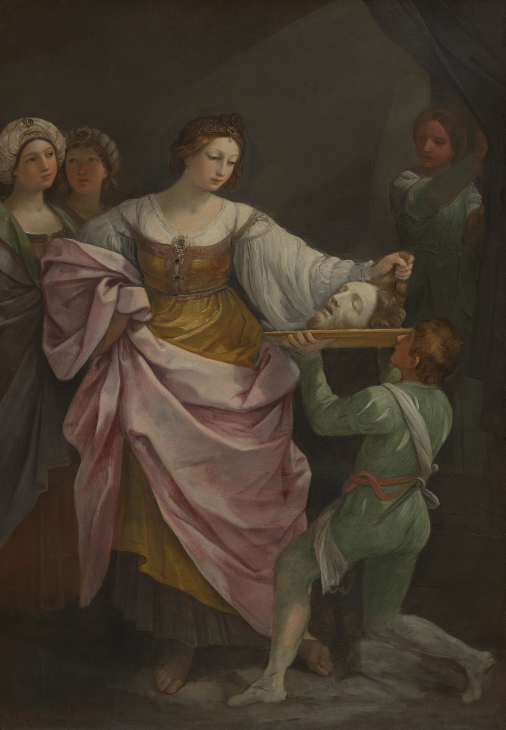 Guido Reni's *Salome with the Head of Saint John the Baptist* holds a strange, luminous tension — the weight of violence rendered in the softest possible light. Reni was the preeminent Bolognese master of the early seventeenth century, trained under Annibale Carracci and deeply shaped by Raphael's idealising vision of the human form. His figures move through their dramas with a deliberate grace, flesh modelled in warm, pearlescent tones that seem lit from within. In this late work, painted in the final years of his life, that quality reaches a kind of distilled perfection: Salome's expression is neither triumphant nor repentant but unreadably serene, which is precisely what makes the image so compelling. Reni returned to this subject more than once across his career, a sign of how deeply the story's moral ambiguity preoccupied him — beauty and complicity joined in a single figure. The hand-painted oil reproduction captures the defining qualities of the original: the honey-warm palette, the sculptural modelling of form, and the quiet psychological charge that has kept this painting in continuous discussion since it was made.