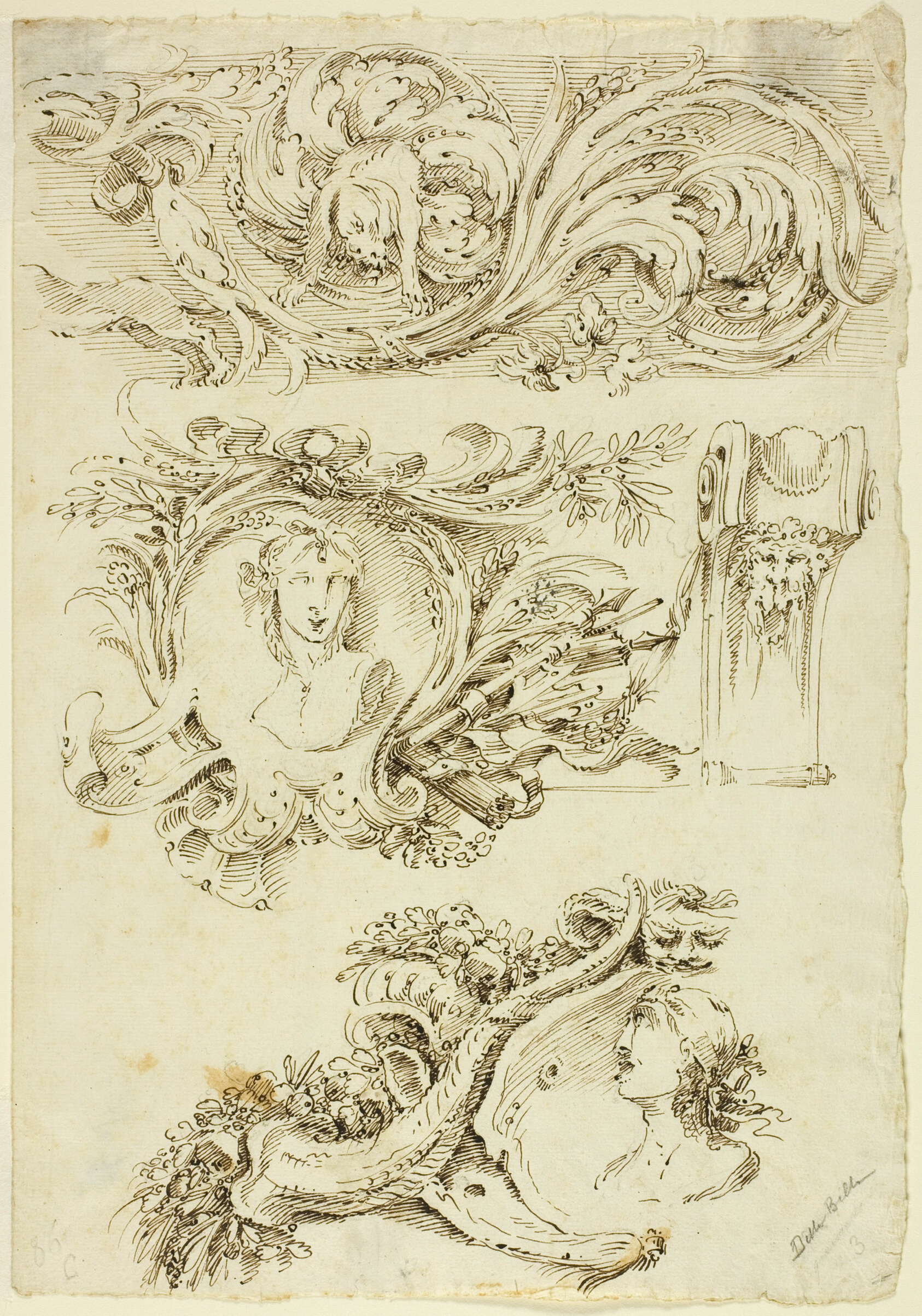 - Pen and brown ink with brush and gray and brown wash and white gouache over graphite, on gray wove paper