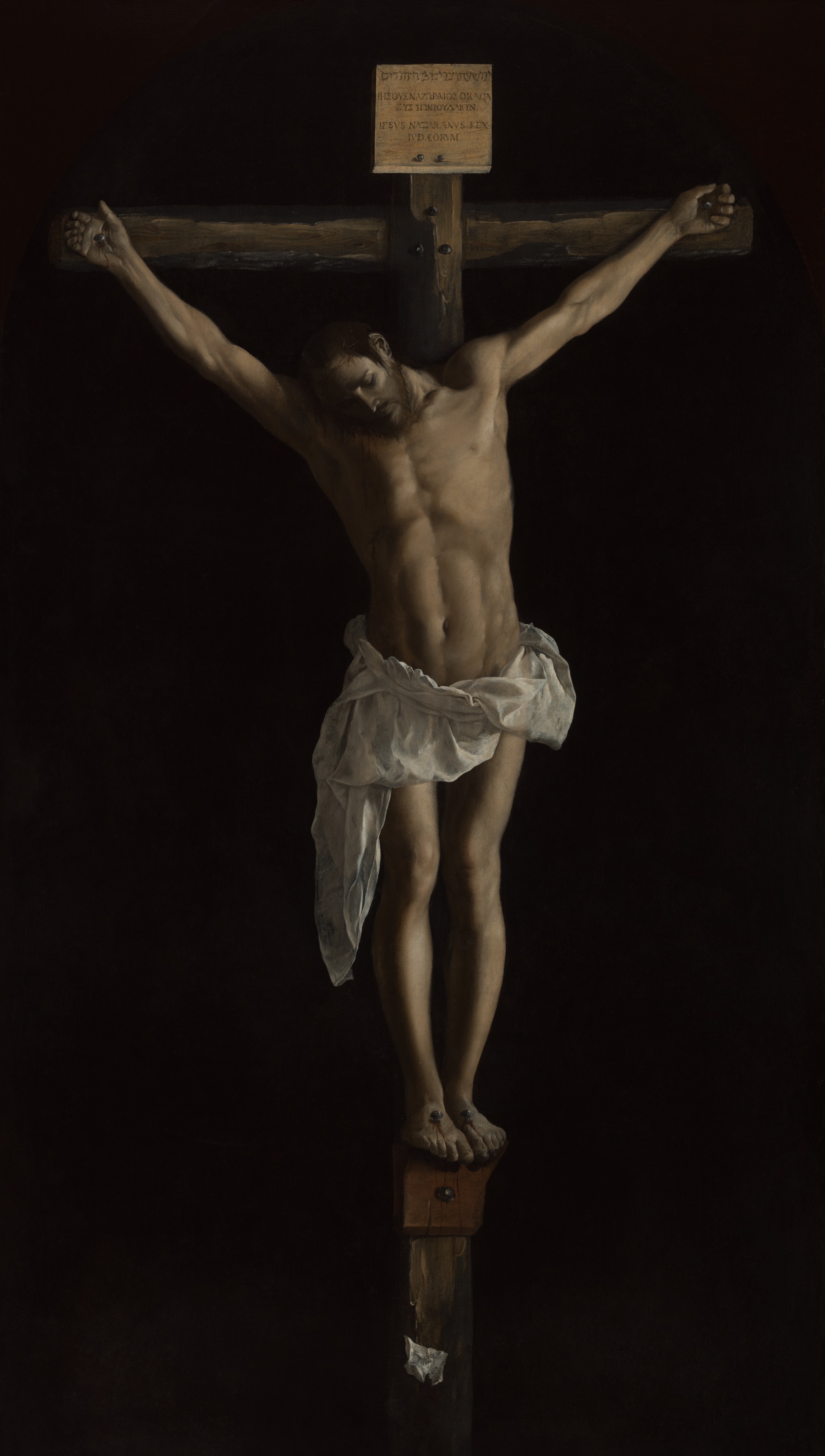 Few paintings render the solitude of the Crucifixion with such quiet, devastating force as Zurbarán's 1627 masterpiece, now held at the Art Institute of Chicago. Zurbarán worked primarily for monasteries and religious institutions in Seville, and his approach to sacred subjects was unlike his contemporaries — stripped of theatrical gesture, deeply still. Here, Christ hangs against an almost total darkness, the figure illuminated with a sculptor's precision: every fold of linen, every shadow on muscle and bone rendered with an intensity that feels devotional rather than dramatic. Where Baroque painters often crowded crucifixion scenes with mourners and angels, Zurbarán isolates Christ completely, making the viewer the only witness. The painting was commissioned for the College of Saint Bonaventure in Seville and reflects the austere Counter-Reformation spirituality that defined Spanish religious art of the period — an emphasis on contemplation over spectacle. Our hand-painted oil reproduction follows Zurbarán's palette and technique faithfully, preserving the luminous contrast between the pale figure and the enveloping darkness that gives the original its meditative power. Painted on canvas by skilled artists using traditional oil pigments, each reproduction is a genuine work of craft, not a print or digital transfer.