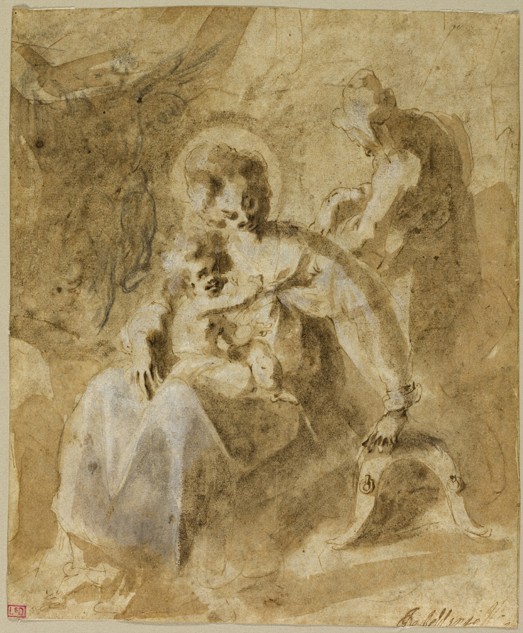 - Pen and brown ink and brush and brown wash, with charcoal, heightened with white gouache, over black chalk, on cream laid paper