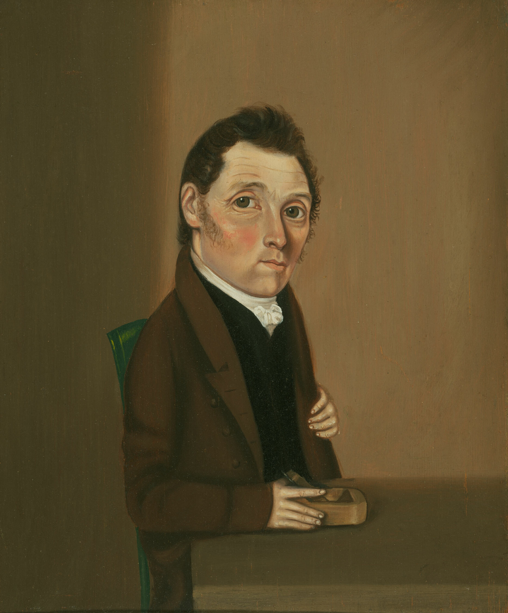 This quietly arresting portrait of William Bonham, completed in March 1825, captures its subject with the steady, unflinching quality that defined the best American portraiture of the era. William Bonnell was active during a formative period for American art, when skilled portraitists served as the primary visual record-keepers of society — documenting the faces of merchants, professionals, and civic figures who sought to leave a permanent mark. His choice to work on panel rather than canvas was a deliberate one: the rigid support eliminates fabric texture, allowing for finer detail and a smoother surface, and panel paintings from this period have often proven more durable than their canvas counterparts over two centuries of handling and storage. The work now resides in the collection of the Art Institute of Chicago, placing Bonnell among the portraitists whose work has earned a permanent home in one of North America's most significant public collections. This hand-painted oil reproduction faithfully renders the tonal subtlety and careful brushwork of the original, bringing a museum-held piece into a living space with the depth and warmth that only oil paint can carry.